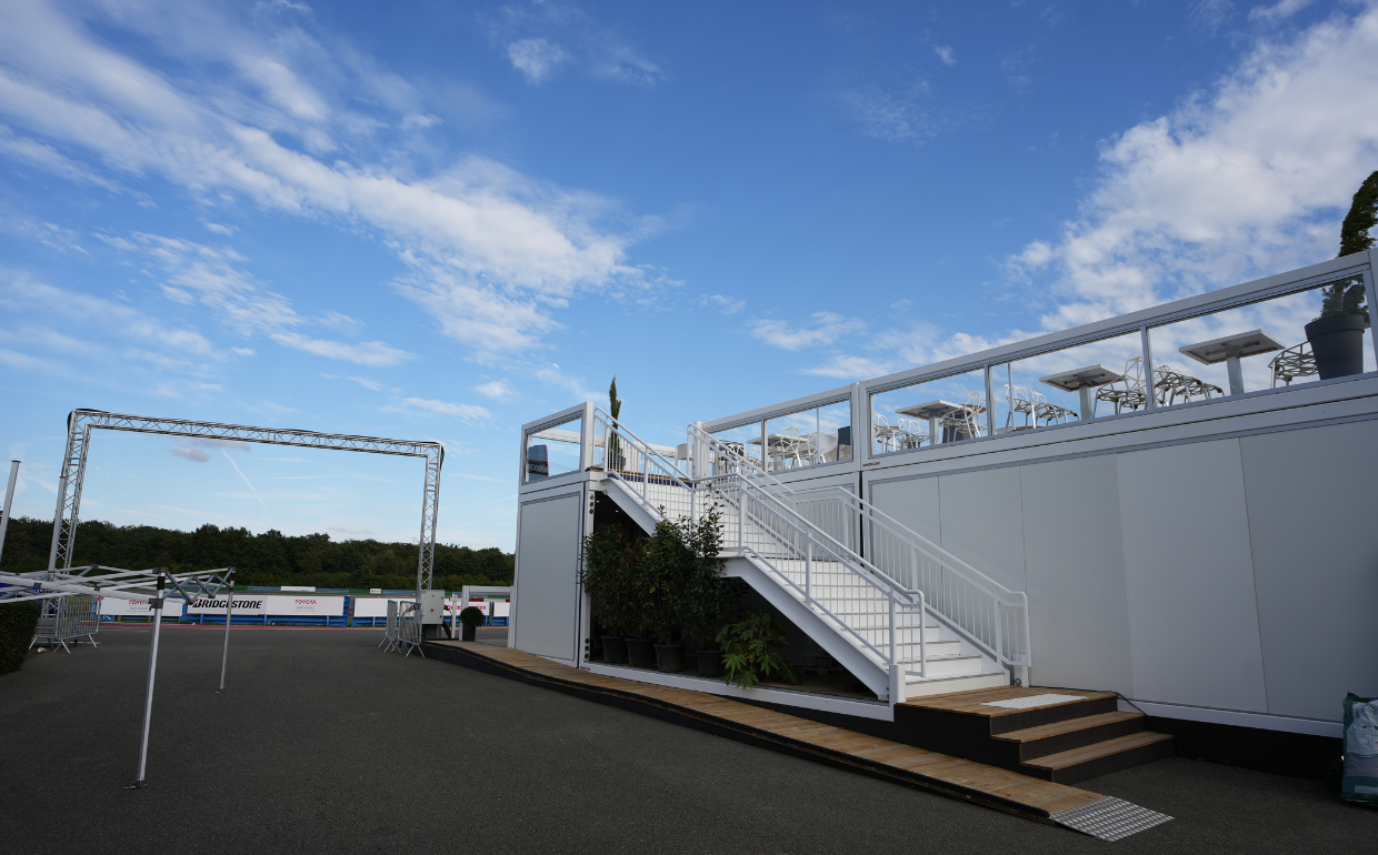 Toyota a choisi notre modèle phare, la Flexbox, pour créer un village d’activation éphémère. Les modules ont été agencés en véritable structure d'hospitalité. Au programme : container bar, espace lounge, zone d’accueil et un rooftop avec une vue panoramique sur les pistes d’essai. Conçus pour des activations outdoor à fort impact, nos containers offrent une visibilité maximale et un look prémium parfaitement adapté à l’univers automobile.